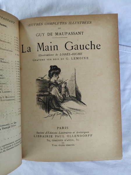 • Le Livre Ceuvres complètes  Ilustrèes de Guy de Maupassant "La Main Gauche". Paris 1903, Société d'éditions littéraires et artistiques, Librairie Paul Ollendorff, 50 chaussée d'Antin, 50. Tradução: O Livro das Obras Completas de Guy de Maupassant "A Mão Esquerda". Paris 1903, Société d'éditions littéraires et artistiques, Librairie Paul Ollendorff, 50 chaussée d'Antin, 50. Livro em frances com mais de 120 anos de existência, encadernação antiga, capa dura com pequeno dano, vendido no estado. Livro diferenciado DE COLEÇÃO PARTICULAR. Este exemplar de colecionador apresenta marcas do tempo e manuseio.