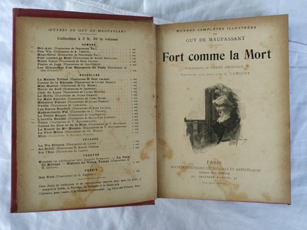 • Le Livre Ceuvres complètes  Ilustrèes de Guy de Maupassant "Fort comme la Mort". Paris 1889, Société d'éditions littéraires et artistiques, Librairie Paul Ollendorff, 50 chaussée d'Antin, 50. Tradução: O Livro das Obras Completas de Guy de Maupassant "Forte como a morte". Paris 1889, Société d'éditions littéraires et artistiques, Librairie Paul Ollendorff, 50 chaussée d'Antin, 50. Livro em frances com mais de 125 anos de existência, encadernação antiga, capa dura com pequeno dano, vendido no estado. Livro diferenciado DE COLEÇÃO PARTICULAR. Este exemplar de colecionador apresenta marcas do tempo e manuseio.