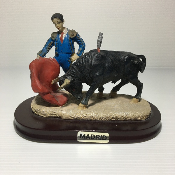 • Estatueta cena de uma tourada em resina com ricos detalhes. Dimensões: 11 cm.