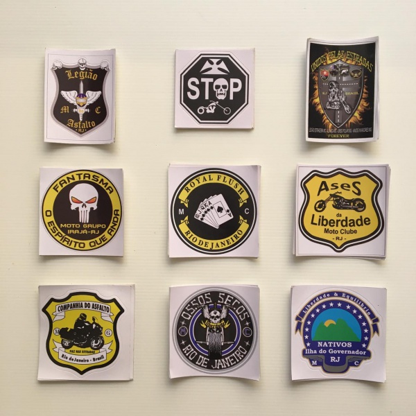 • Parte de coleção com 45 adesivos de moto clube da região sudeste do Brasil. Total de  nove modelos diferentes (5 unidades de cada modelo).