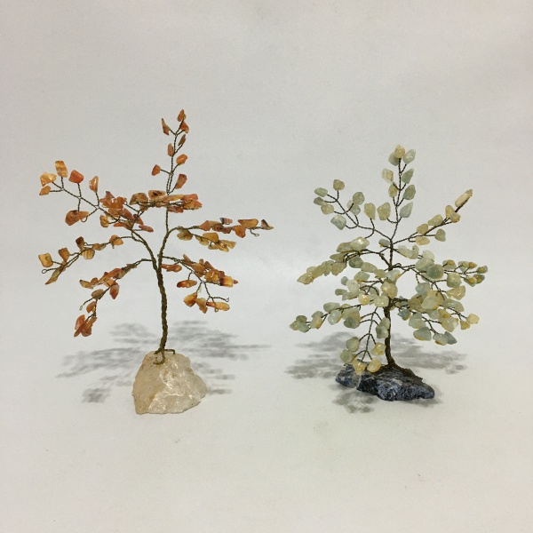 • Par de delicadas árvores confeccionadas com pedras naturais. Dimensões: 18 cm x 9 cm.