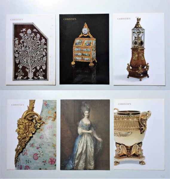 • Seis Cartões CHRISTIE'S com imagem de artefatos antigos: Dimensões 21 x 15 cm.