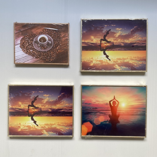 • Quatro quadros decorativos nunca utilizados. Dimensões: 20 cm x 25 cm aproximadamente.