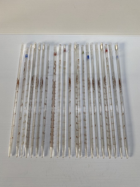 • Lote com 21 pipetas 5 ml  e 10 ml de vidro. Dimensões: 30 cm aproximadamente.