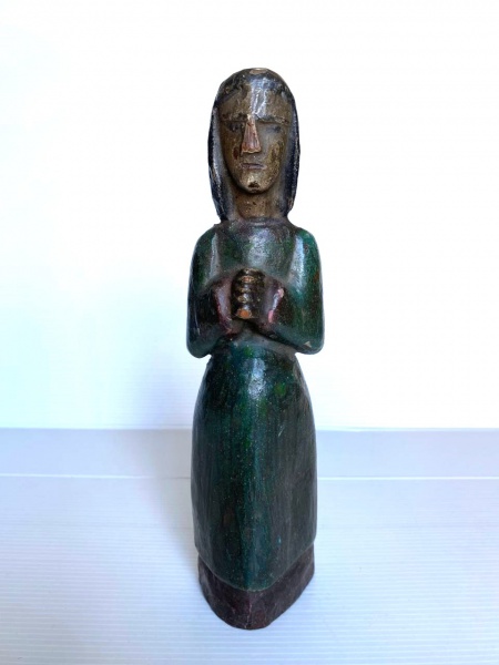 • ARTE POPULAR - Estatueta esculpida em madeira. Exemplar assinado. Dimensões: 20 cm altura.