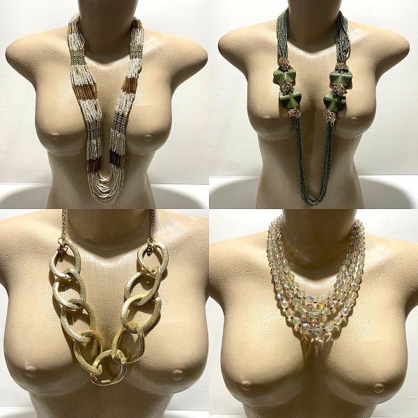 • Lote com 4 colares feitos de bijuterias. Dimensões: 48 cm (maior colar).