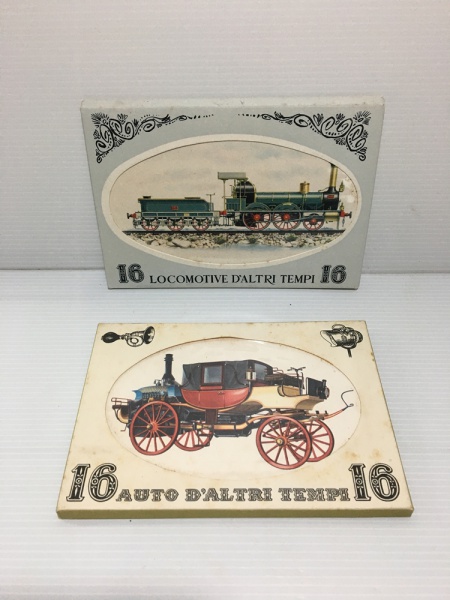 • Casa Editrice Capitol - C.E.B Bologna - Lote com estojos contendo 16 cartões postais cada, totalizando 32 unidades com figuras de veículos e locomotivas antigas. Dimensões: 11 cm x 15,5 cm.