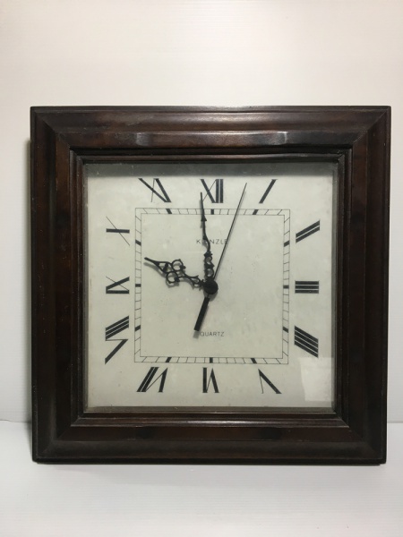 • Relógio de parede de madeira da marca Kenzie - Germany - Movido à pilha. Não testado. Dimensões: 33 cm x 33 cm x 7 cm.