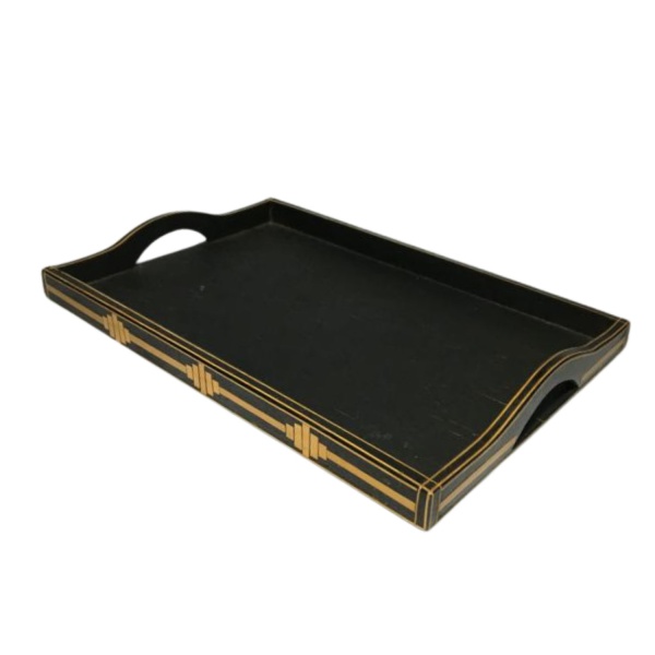 • Delicada bandeja com alças  em madeira  decorada com detalhes tiras de bambu em tons claro. Dimensões: 4 cm x 24 cm x 35 cm.