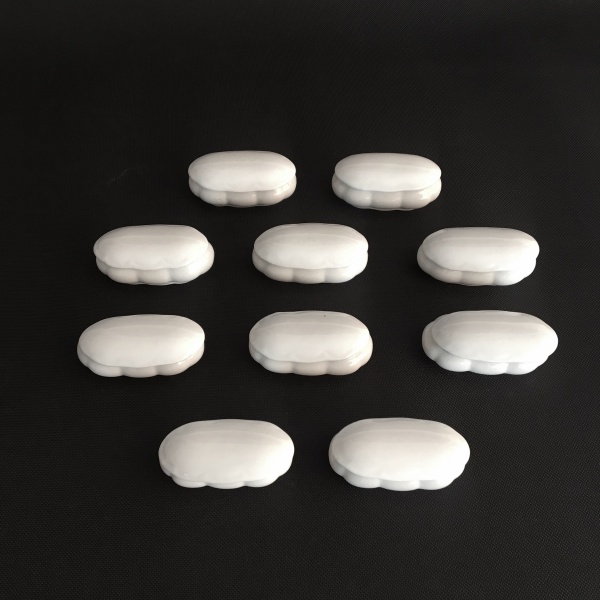 • Conjunto com 10 portas comprimidos em porcelana esmaltada na cor branco. Dimensões: 3 cm x 6 cm x 3 cm.