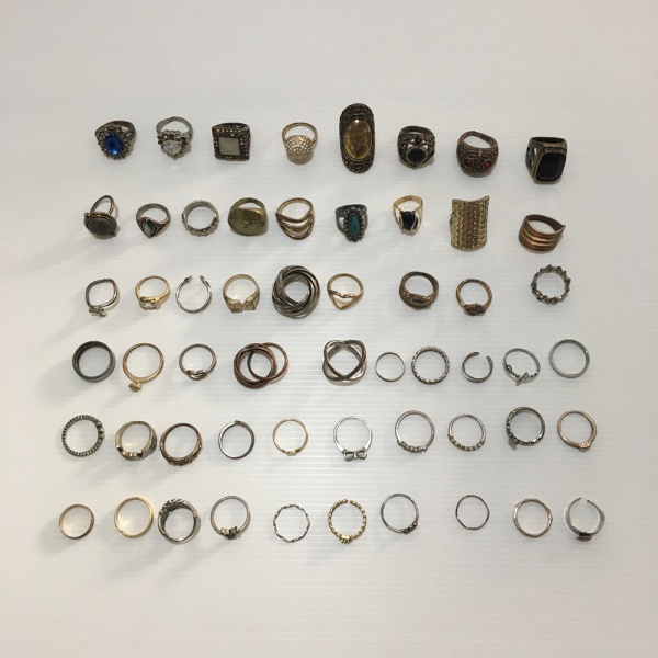 • Lote com anéis femininos de diversos tamanhos e modelos.