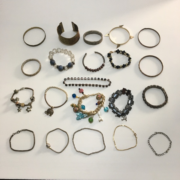 • Lote com pulseiras femininas de diversos tamanhos e modelos.