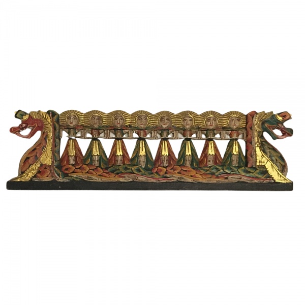 • BALI - Talha em madeira entalhada e policromada. DImensões: 29 x 100 cm.