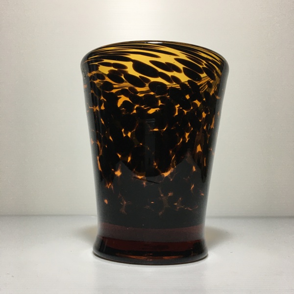 • Vaso em pasta de vidro âmbar com detalhes profusos na cor preto. Dimensões: 12 cm x 10 cm.