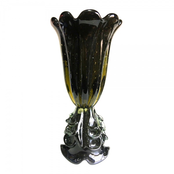 • Grande vaso de murano em pasta de vidro com microbolhas internas na cor Verde escuro (cor visível contra a luz). Dimensões: 46 cm / 9 kg.