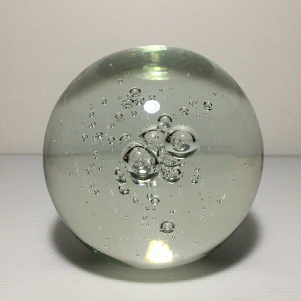 • Esfera em pasta de vidro decorada com bolhas na parte interna. Dimensões: 11 cm diâmetro / 1,8 kg.