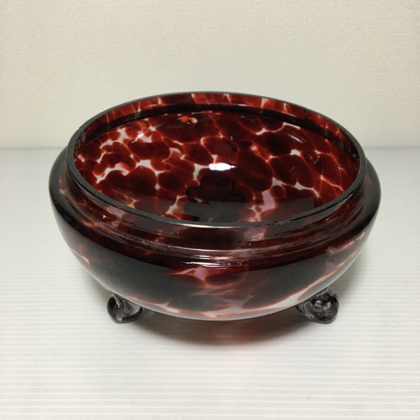 • Bowl em pasta de vidro decorado com detalhes vermelhos. Borda com pequemo bicado. Dimensões: 8 cm x 14 cm.