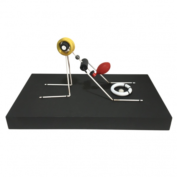 • Escultura abstrata feita de madeira nas cores branco, amarelo e preto com belos acabamentos. Obra única, assinado HDG no fundo. Dimensões: 39 cm x 27,5 cm x 23,5 cm.