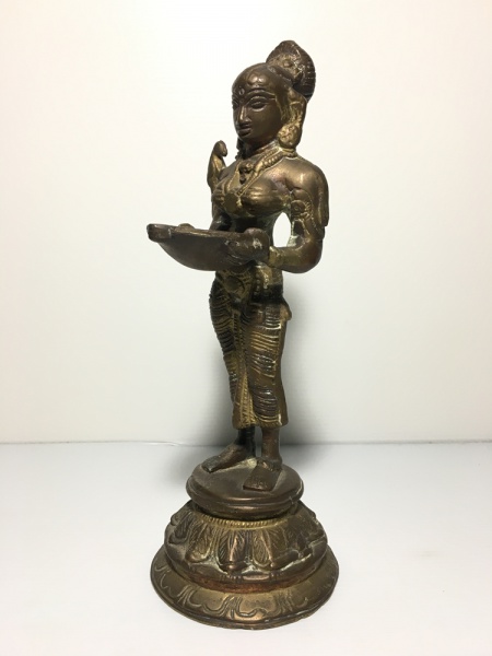 • ÍNDIA - Antiga estatueta da deusa hindu Lakshmi em bronze com belos detalhes. Dimensões: 22 cm / 1,4 kg.