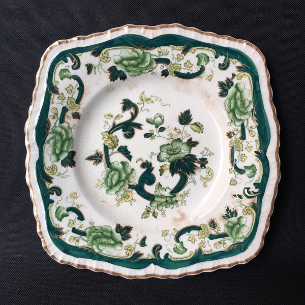 • MASON´S ENGLAND - Antigo prato em faiança , formato quadrado com realces pintados à ouro. Dimensões: 23 cm x 23 cm.