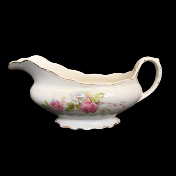 • W.M. GRINDLEY ENGLAND - Antiga e bela molheira em fina porcelana esmaltada decorada com arranjos florais e filetes pintados a ouro. Pequenos sinais de desgastes devido ao tempo. Dimensões : 10 cm x 22 cm x 10 cm.