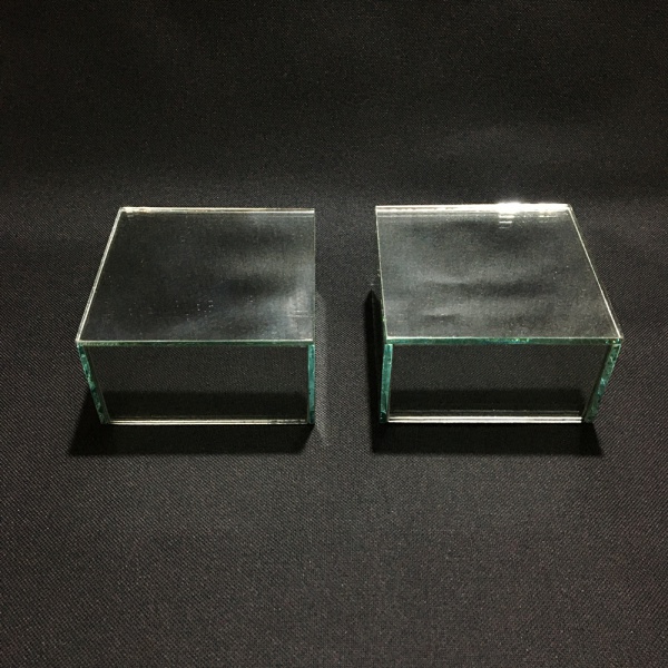 • Delicado par de bases espelhadas. Dimensões: 5 cm x 10 cm x 10 cm.