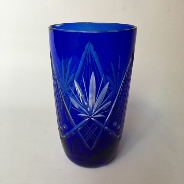 • Antigo copo de vidro azul. Dimensões:14 cm.