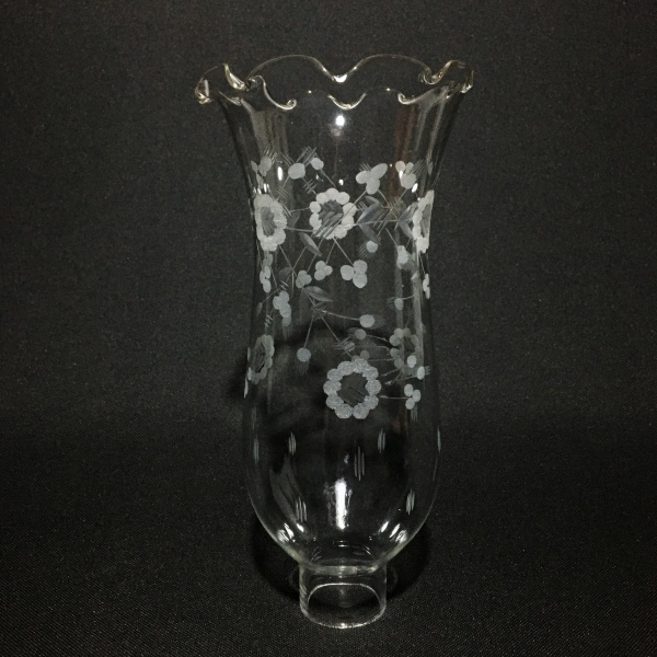 • Bela e delicada Tulipa em vidro, decorada com arranjos florais lapidados e satinados. Dimensões: 22 cm.