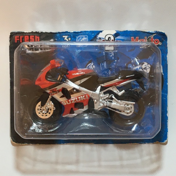 • Moto de miniatura, modelo SUZUKI GSX R 1000, escala 1:18, construído em metal, plástico e rodas emborrachas. Embalagem lacrada. Coleção Maisto - 2 Wheelers - Fresh metal. Dimensões da embalagem: 6 cm x 12 cm x 17 cm.