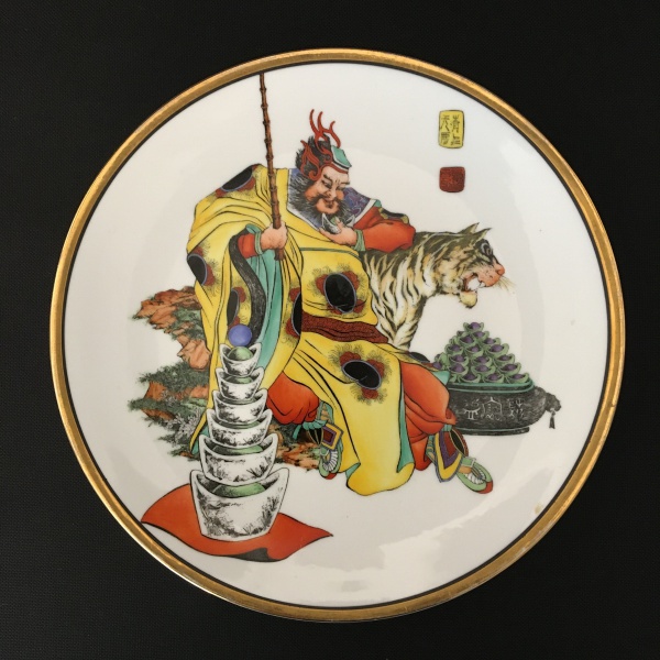 • ARTE ORIENTAL - Belo prato em porcelana esmaltada  decorado ao centro com pintura feito à mão. Assinado. Dimensões: 25 cm.