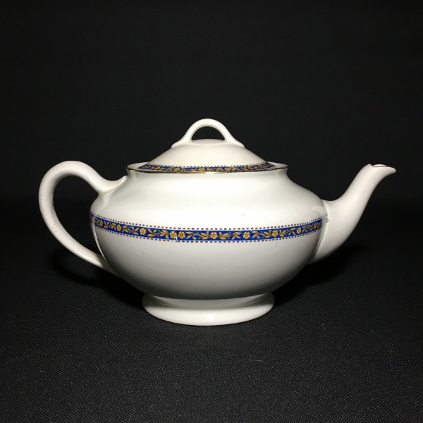 • JOHN MADDOCK & SONS LTD - ROYAL VITREOUS - ENGLAND - Antigo Bule em faiança do Séc XIX, decorado com detalhes florais em amarelo sobre faixa azul royal.  Realces pintados à Ouro. Presença de craquelados e pequenas manchas do tempo. Dimensões: 14 cm x 17 cm x 26 cm.