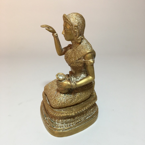 • ÍNDIA - Antiga estatueta de figura feminina em bronze com belíssimos detalhes. Dimensões: 12,5 cm x 7 cm x 7 cm / 350g.