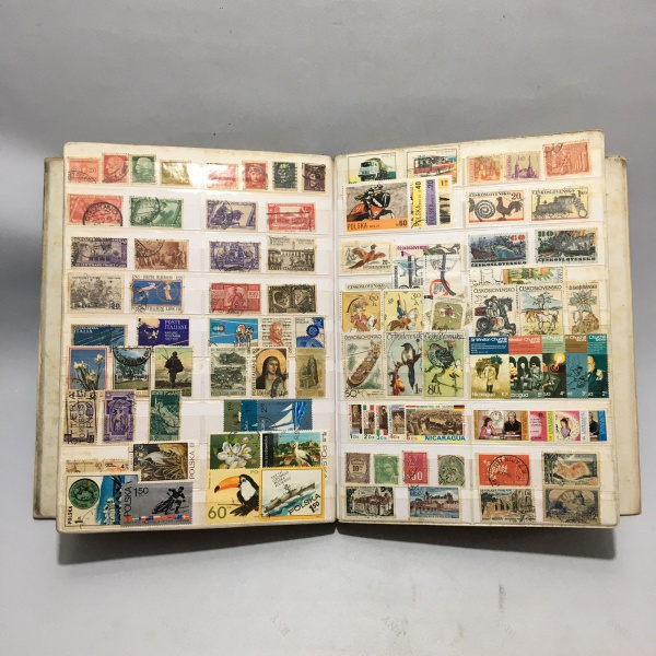 • Antigo álbum de selos nacionais e internacionais. Aproximadamente 250 selos.