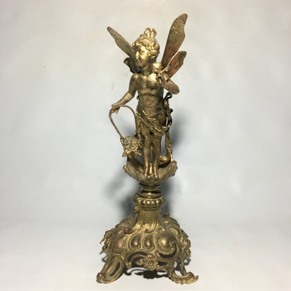 • Antiga escultura de figura angelical , com riquíssimos detalhes. Obra construida em metal dourado . Presença de pequenos desgastes. Dimensões: 37 cm / 1,5 kg.