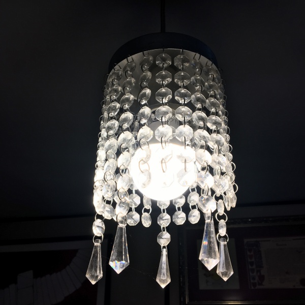 • Luminária de teto com pingentes de cristal. Acompanha canopla. Dimensões: 25 cm x 15 cm.