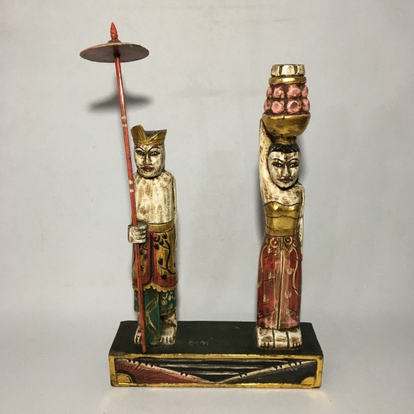 • INDONÉSIA - Par de esculturas "RAMA E SITA"  em madeira talhada e policromada. Ricos detalhes. Dimensões : 95 cm cada.