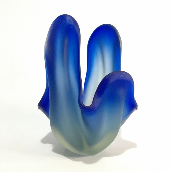 • MURANO - Elegante e robusto centro de mesa em pasta de vidro satinado em tons de azul, com belíssimas ondulações. Exemplar parte de coleção e em excelente estado. Dimensões: 17 cm x 20 cm x 17 cm / 3500 kg.