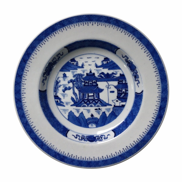 • MACAU - Belo prato  em porcelana esmaltada decorado  ao centro, faixas e estilizados em tons de azul. Dimensões: 23 diâmetro.