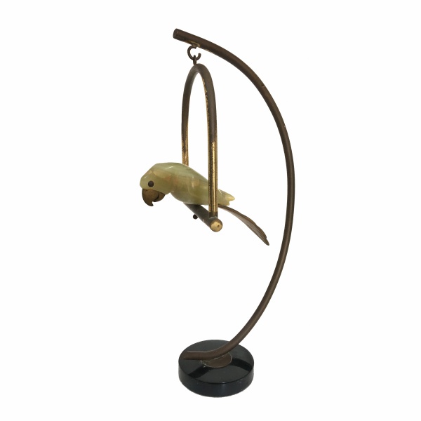• Antiga e rara escultura de Pássaro esculpida em Ônix verde e detalhes em bronze, possivelmente de origem Europeia. Acompanha suporte em metal dourado e base em baquelite. Dimensões: 50 cm de altura. medida da base 12 cm e escultura com 22 cm.