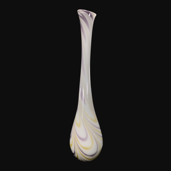 • MURANO - Elegante vaso em pasta de vidro decorado com linhas lilás e verde sobre fundo branco. Dimensões: 60 cm x 20 cm.