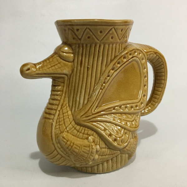 • Antiga caneca  no formato de ser mitológico,em cerâmica esmaltada na cor ocre. Exemplar ricos em detalhes. Dimensões:17cmx 9 cm x 20cm.