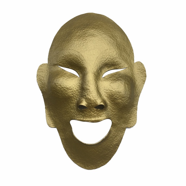 • ARTE ORIENTAL - Antiga máscara em folha de cobre martelado. Dimensões: 22,5 cm x 18 cm.