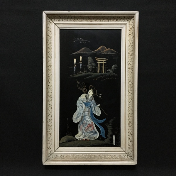 • JAPÃO - Antiga pintura "Figurativa" sobre eucatex revestido em laca. Assinada. Artista não identificado. Dimensões: Aproximadamente 40 cm x 25 cm.