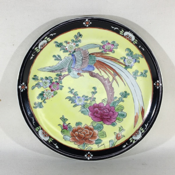 • Belo prato em porcelana esmaltada decorada com pintura no estilo Oriental de flores e ave do paraíso.  Real S. Paulo marcado no fundo. Exemplar em excelente estado. Dimensões: 25 cm diâmetro.
