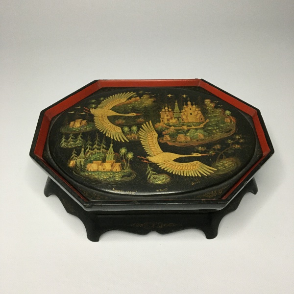 • Antigo porta-joias Oriental em madeira laqueada nas cores preto e vermelho. Formato retangular e sextavado.Tampa removível, decorada com cena Pitoresca policromada. Belos detalhes. Dimensões: 5,5 cm x 14,5 cm x 19,5 cm.