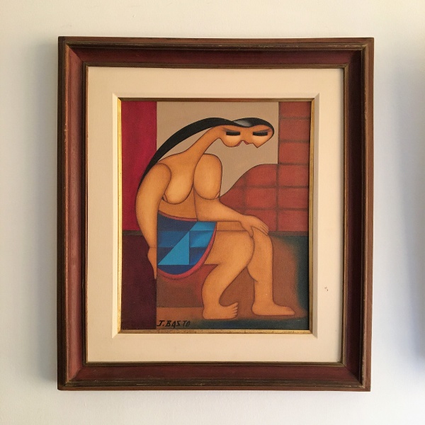 • JOÃO COUTO BASTO - "Nua Tímida", ost, datado 7-10-89 e localizado Rio-Brasil no verso, 46 cm x 38 cm e emoldurado 62 cm x 70 cm.