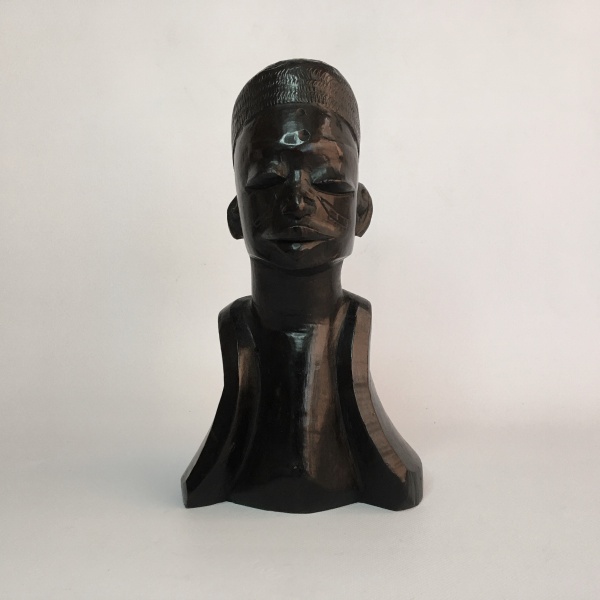 • ARTE AFRICANA - Busto "GUERREIRO", esculpido em madeira nobre "ÉBANO". Dimensões: 19 cm de altura.