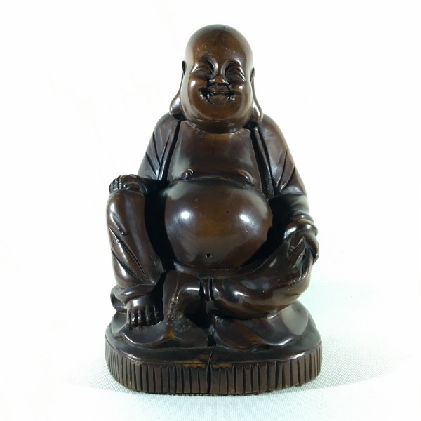 • ARTE ORIENTAL - Belo e antigo buda em madeira nobre e polida. Exemplar de coleção e em excelente estado. Dimensões: 18 cm x 11 cm x 10 cm.