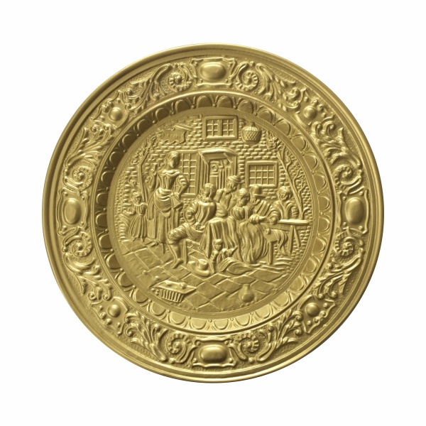 • ENGLAND - Grandioso e antigo Medalhão em metal revestido de dourado, decorado com cena do SÉC XVIII  "CABARET".  ladeado por larga faixa decorada com folhas de acanto. . Exemplar em excelente estado. Dimensões: 43 cm de diâmetro.