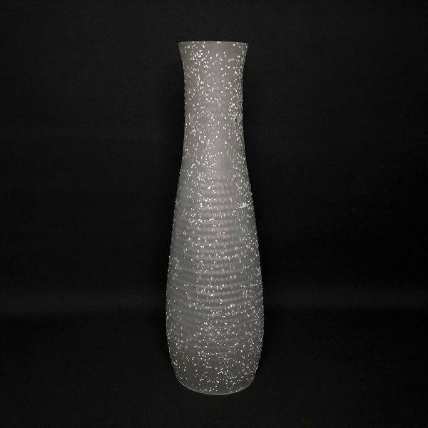 • Robusta cúpula em vidro jateado, rematado com  detalhes profusos na cor branco. Parte superior com três orifícios. Dimensões: 37 cm x 11 cm diâmetro.